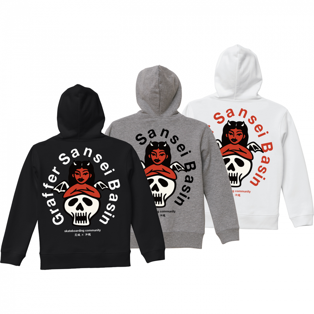 Graffer(茨城) × Basin(沖縄) × Sansei のスペシャルコラボパーカー。